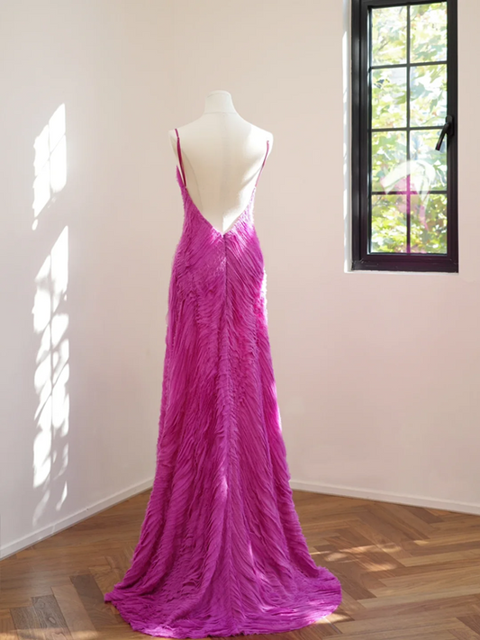 Barbie pink halter-neck fitted long sexy ball gown, bridal dress R8514