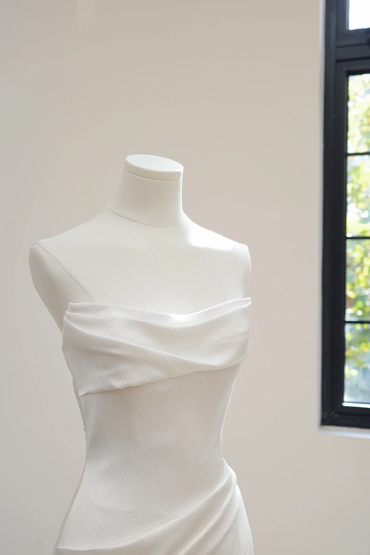 White strapless, fitted waist, long fishtail skirt, sexy ball gown, bridal dress R8511