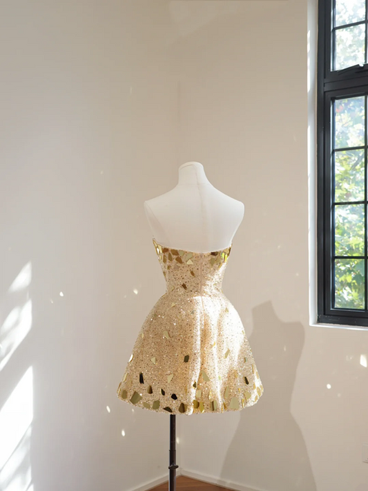 Gold strapless A-line short prom dress R8463