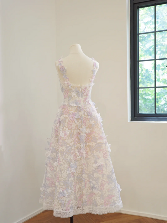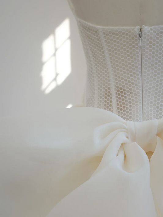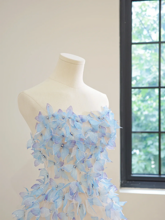 Light blue butterfly-embellished strapless A-line short ball gown R8470