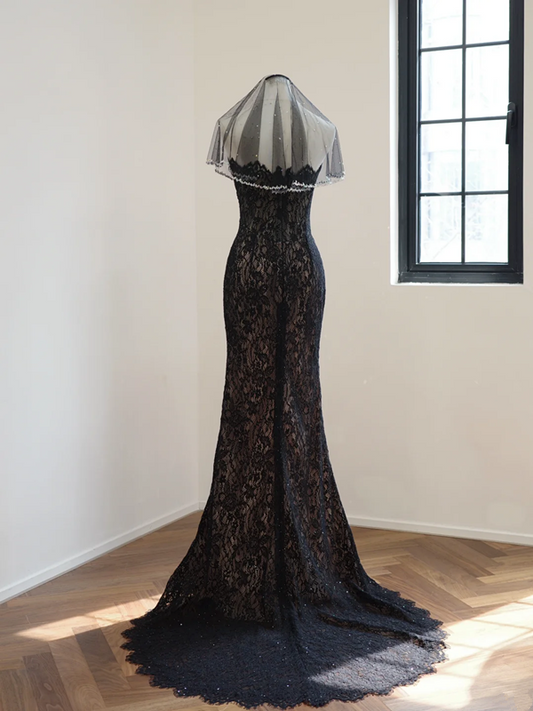 Black strapless fitted lace long ball gown R8472