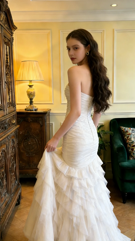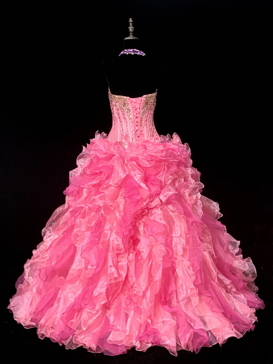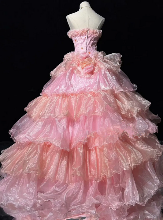 Light pink strapless fitted waist slim-fitting ball gown with a flared cake skirt R8696