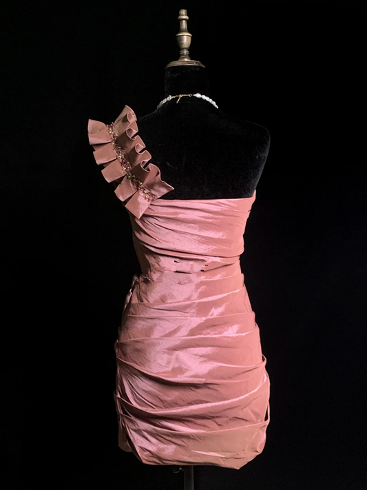 Light pink sequined strapless fitted waist bodycon short prom dress R7626