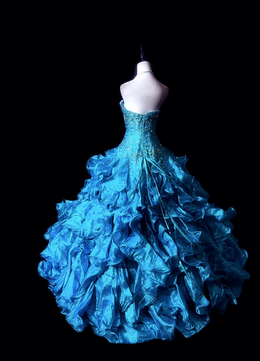 Light blue strapless, fitted waist, full skirt, long ball gown R8702
