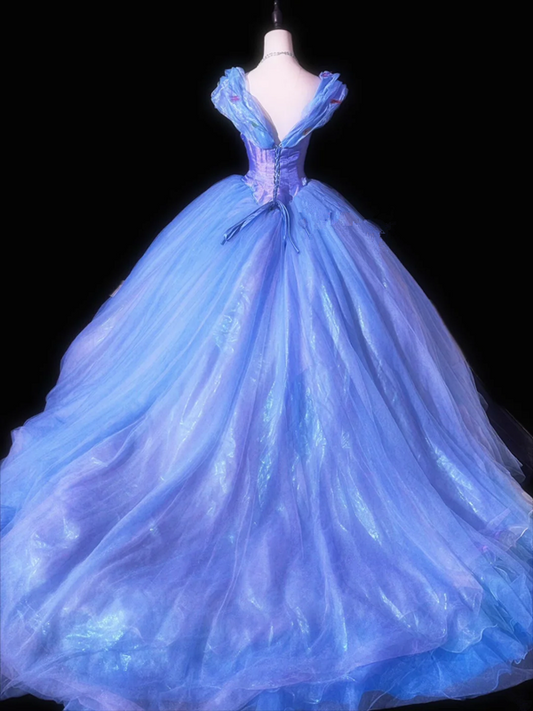 Blue V-neck fitted waist slim-fitting ball gown with a full skirt R8703