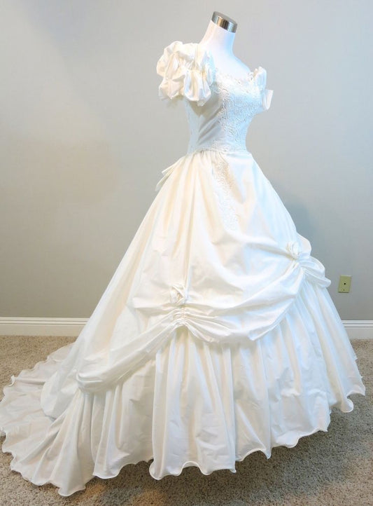A Line Ball Gown White Evening Dress, White Wedding Dress Long Bridal Gown S6282