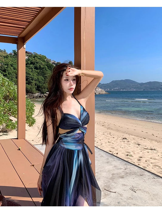 A line Blue Floral Prom Dresses Evening Dress S6650