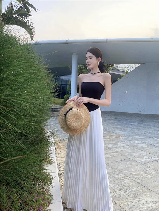 A Line Black Strapless Elegant Evening Gowns Unique Prom Dress S7230