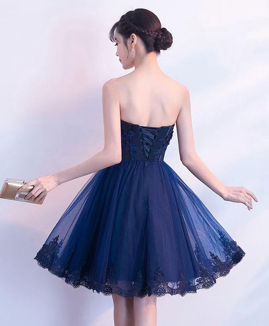 Cute Dark Blue Tulle Lace Short Prom Dress, Homecoming Dress S2951