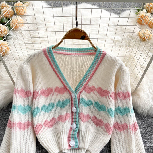 Cute heart pattern cardigan sweater S588