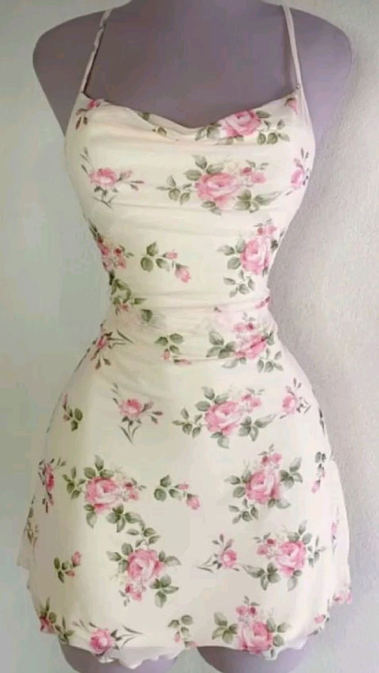 Cute Sheath Spaghetti Straps Floral Short Homecoming Dresses S7178