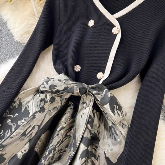 dress for women retro knitted splicing lojacquard ng skirt S4522
