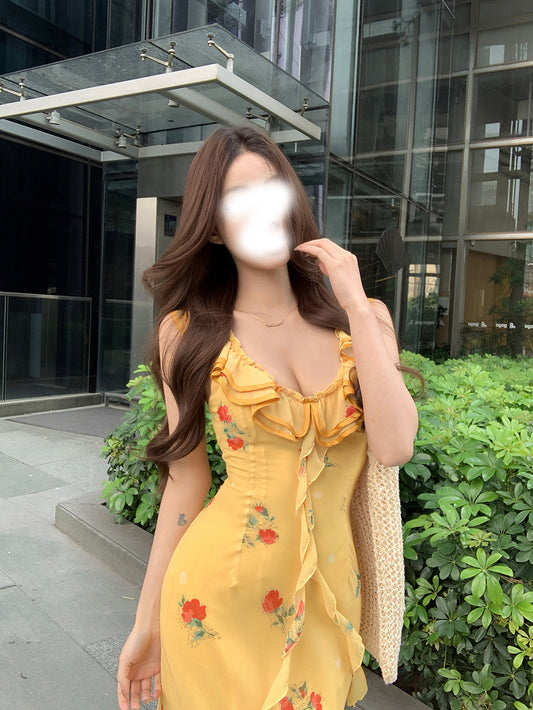 Dusk Rose Lace Floral Suspender Dress 2025 New Seaside Vacation Fishtail Long Dress R0040