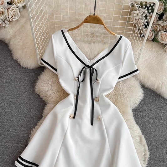 Fashionable sexy V-neck A-line short-sleeved dress S4338