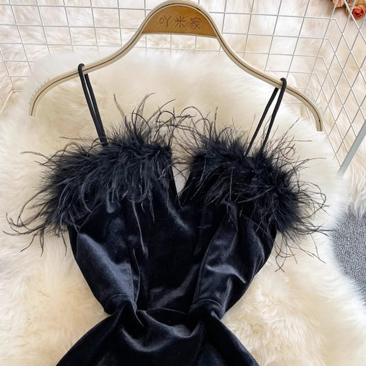 Fashionable sexy long-sleeved dress long skirt velvet V-neck dress S3964