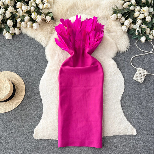 Fishbone halter neck V-neck dress Fishbone tube top R2057