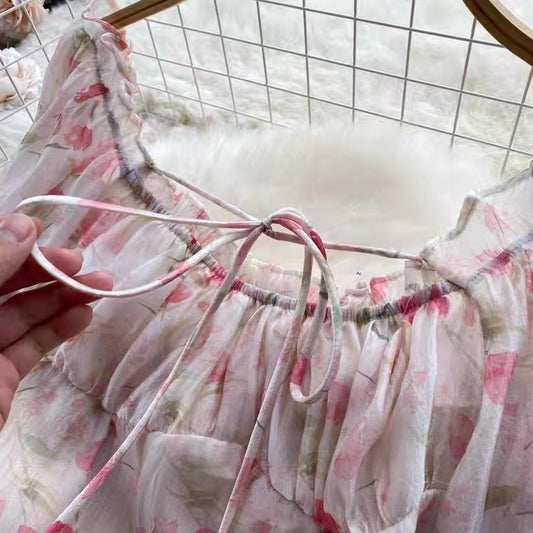 Girly Dress. Floral Bubble Sleeves Gently Princess Dress S4432