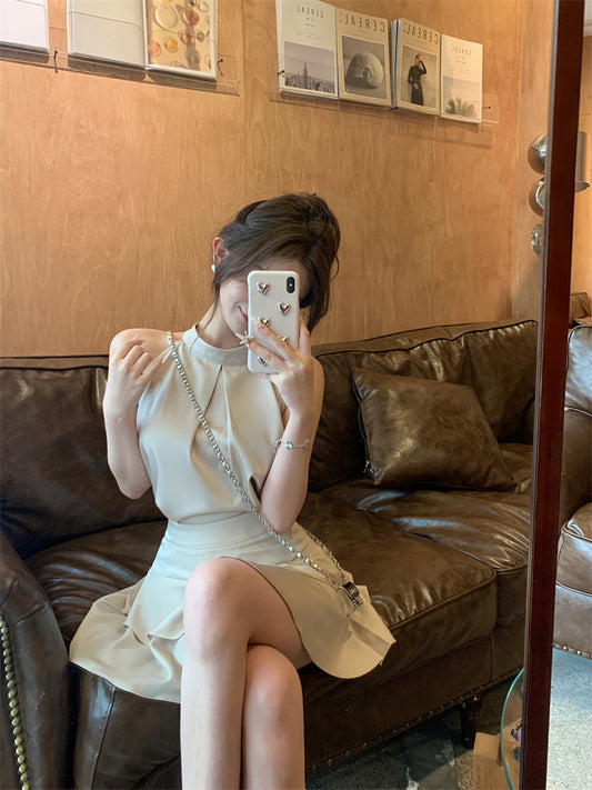 Goddess filter high-grade satin top ruffled skirt two-piece suit female summer new style R0082