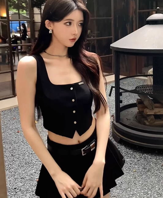 High-end short vest vest top 2025 plus size hot girl street pleated skirt suit R1368