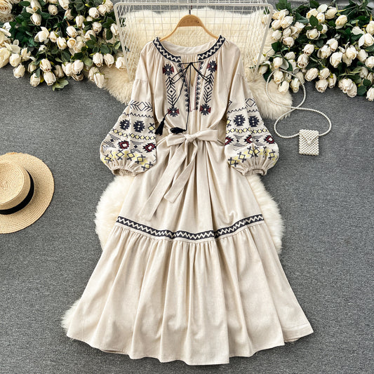Holiday style dress outfit sweet and stylish embroidery loose waist long skirt R2331