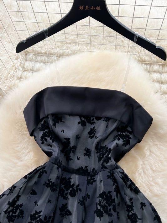 Jacquard Dress,strapless Dress,black Dress,vintage Dress S4478