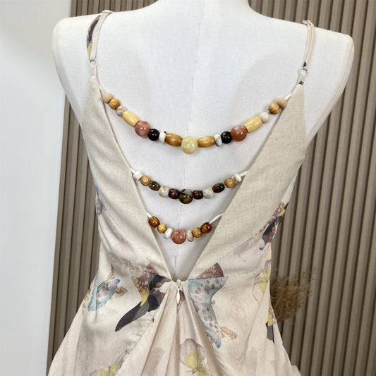 Jiangnan Heavy Industry New Chinese Backless Midi Skirt 2025 New Waisted Suspender Long Skirt R0068