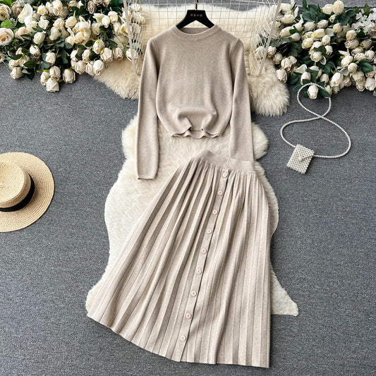 knitted fashion suit for women round neck T-shirt + pleated skirt S4580