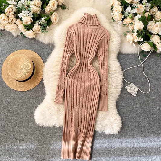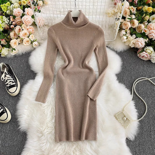 Knitted Dress Women's High Neck Stretch Skirt S4523