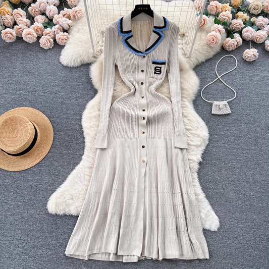 Knitted long-sleeved dress for women new style gentle long dress S5577