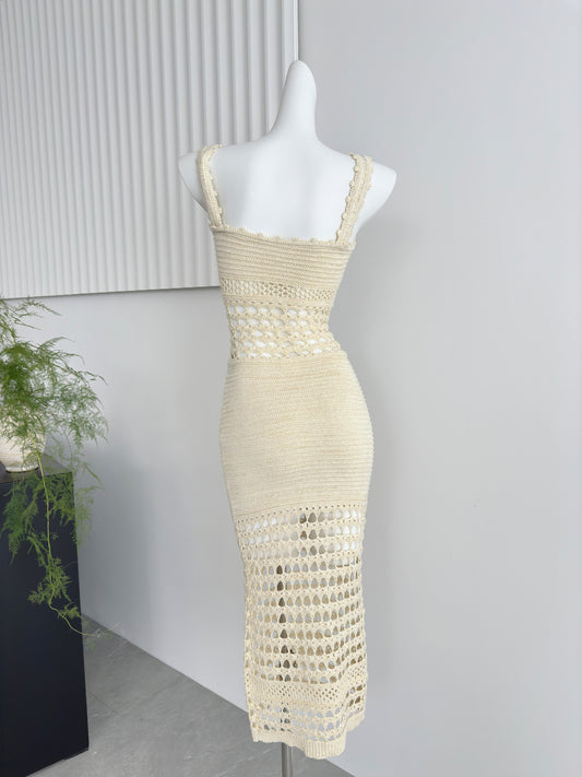 Knitted sexy hollow long skirt hip-wrapped glittering suspender dress R2081