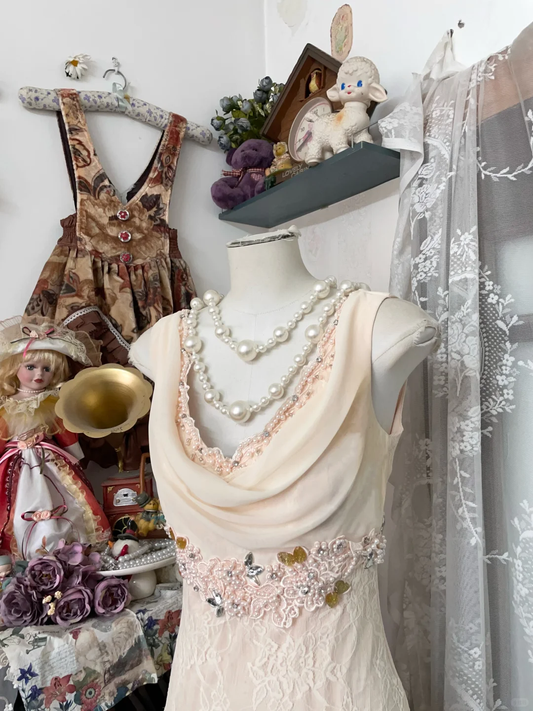 Light pink sequined slim waist fishtail skirt bridal dress R6018