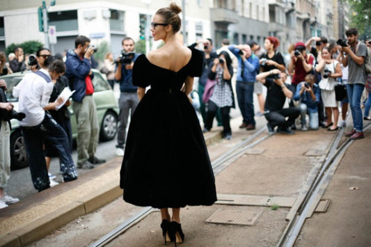Little Black Prom Dresses Off-shoulder Velvet Tea Length Ball Gown Amazing Evening Gowns S3285
