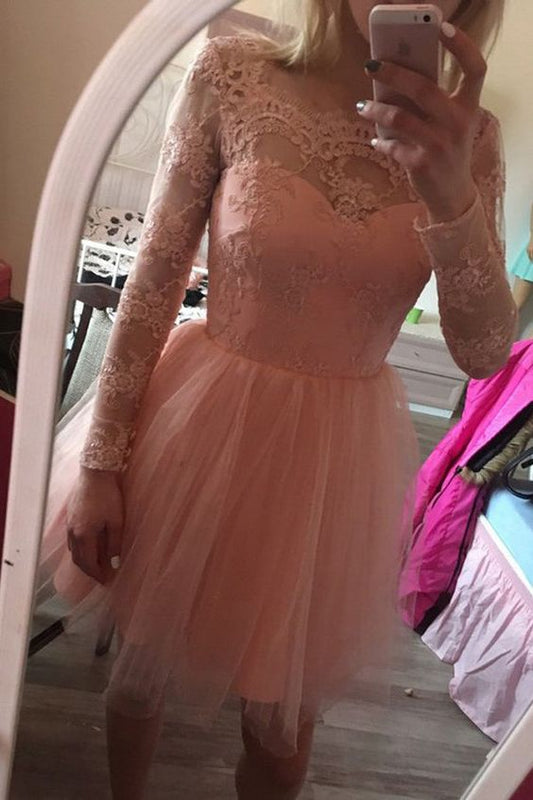 Long Sleeves Short Prom Tulle Homecoming Dresses with Appliques S3291
