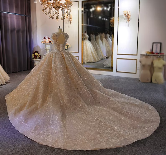 Luxury Lace Wedding Dress,Elegant Bridal Gown, Beaded Applique Long Dress S6087