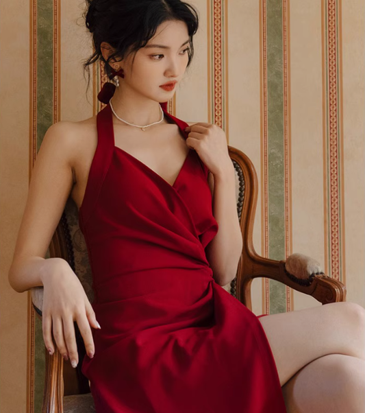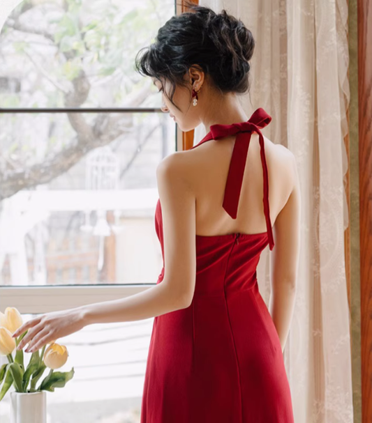 New Chinese cheongsam young style sleeveless halter neck dress 2025 new R1802