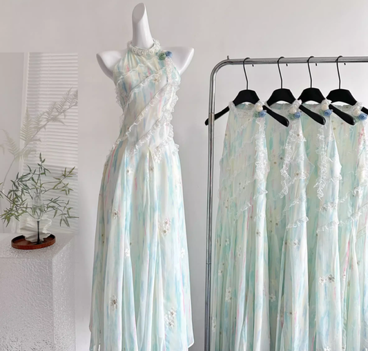 Purple chiffon floral dress for women 2025 summer beautiful waist long dress homecoming dress R3013