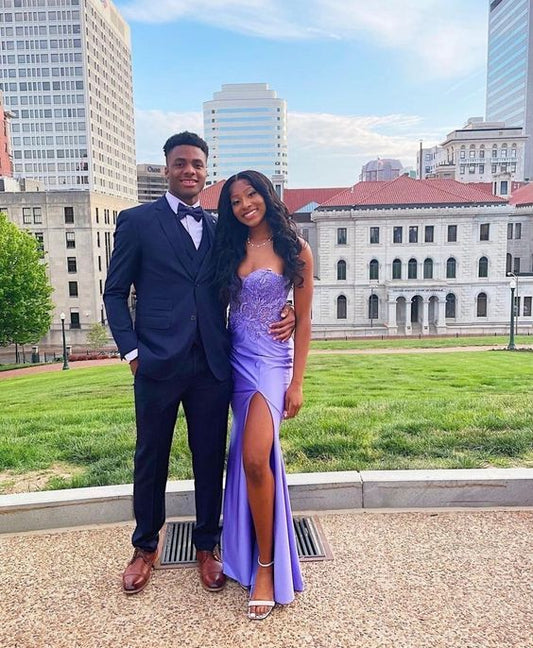 Purple Strapless Appliques Long Prom Dress with Slit S5107