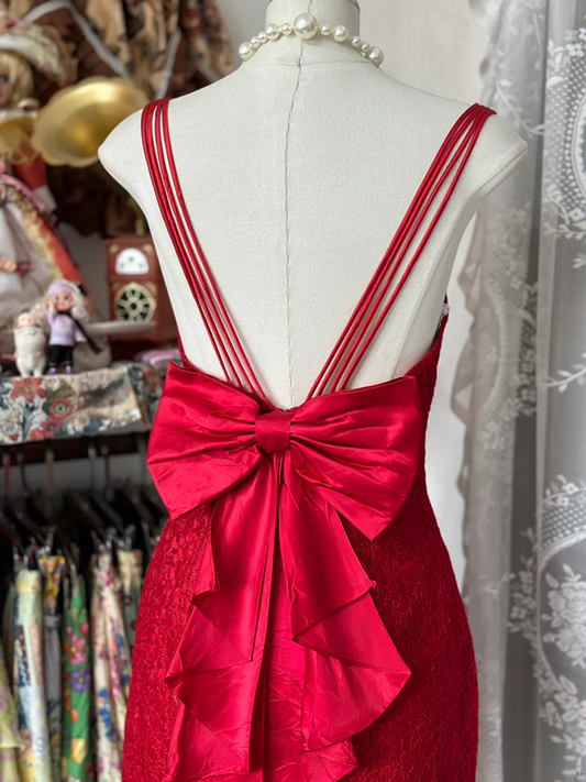 Red high-end suspenders, slim waist and long skirt, homecoming dress R4524