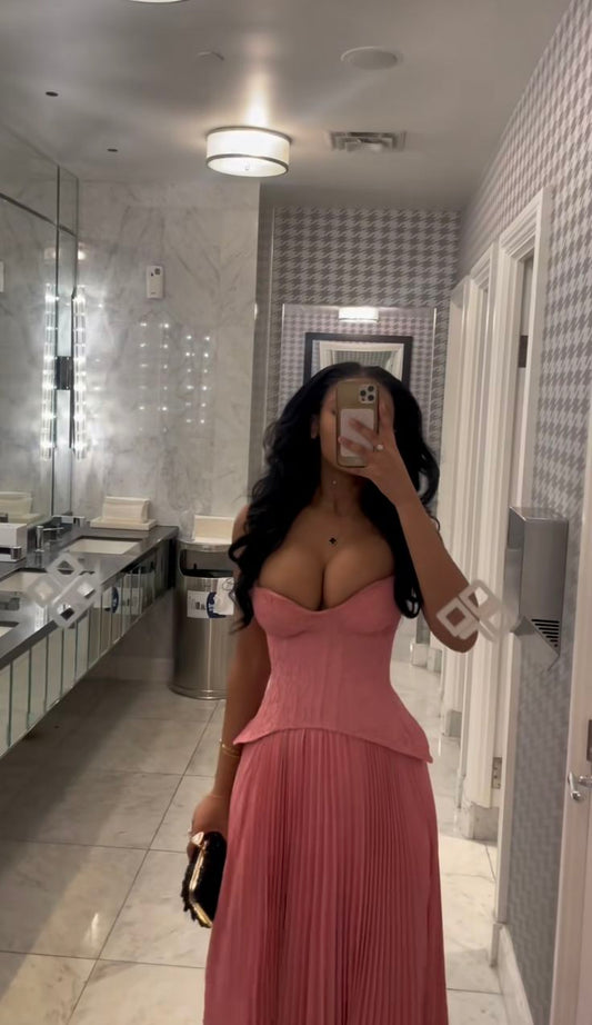 Sexy pink knitted suspender dress gentle temperament waist slim hip skirt R0502