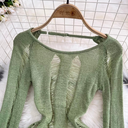 Sexy Round Neck Backless Long Sleeve Knitted Sweater Tops for Women S4330