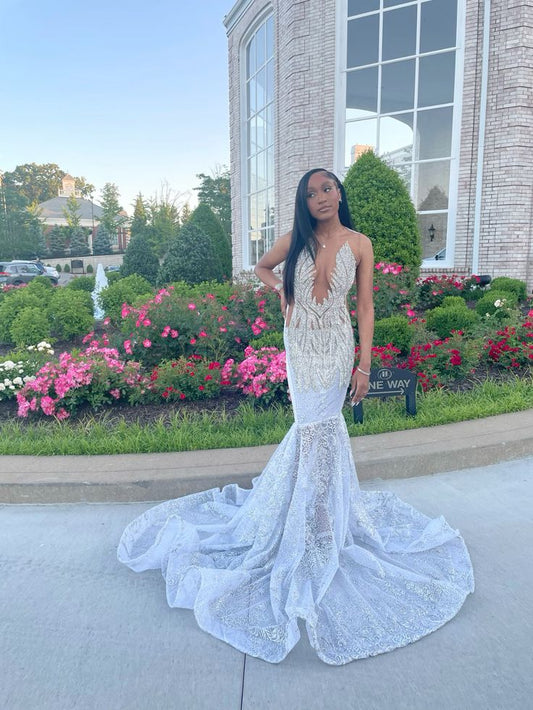 Silver formal dress Sexy Mermaid Long Evening Dresses Prom Gown S6956