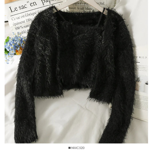 Slim cardigan long sleeved sweater with suspender vest inside S3044