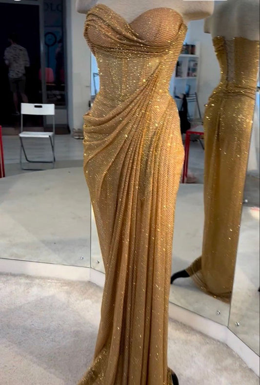Strapless Mermaid Long Gold Prom Dress Long Formal Dress S6177