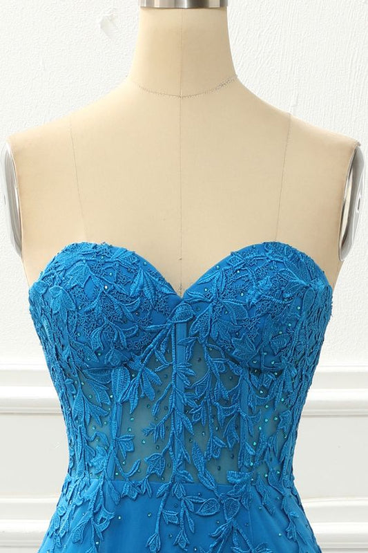 Strapless Mermaid Green Lace Prom Dresses, Mermaid Green Short Lace Formal Graduation Evening Homecoming Dresses S3067