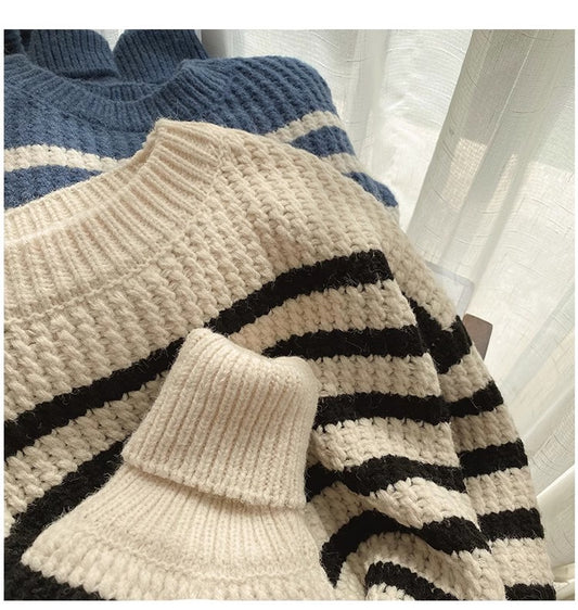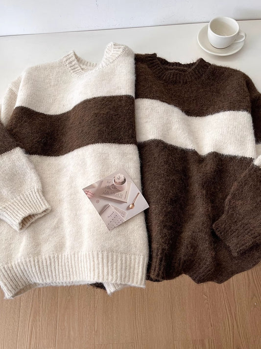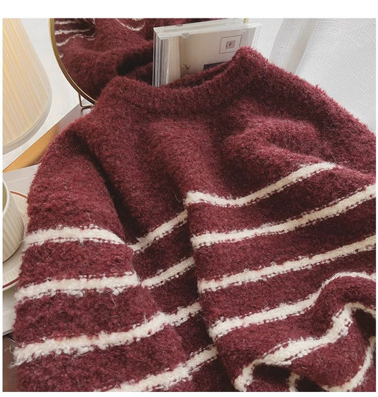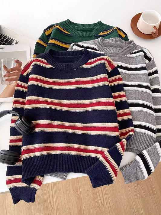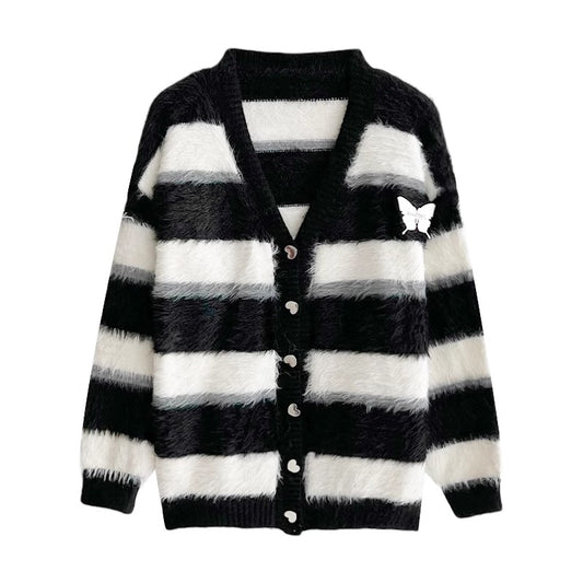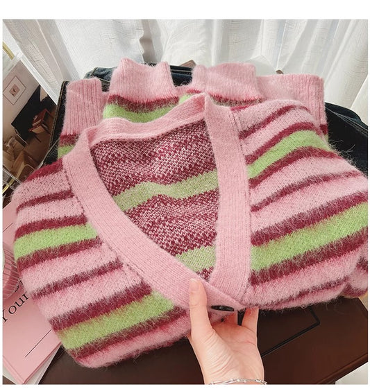 striped long-sleeved sweater jacket for women new soft knitted cardigan S4919