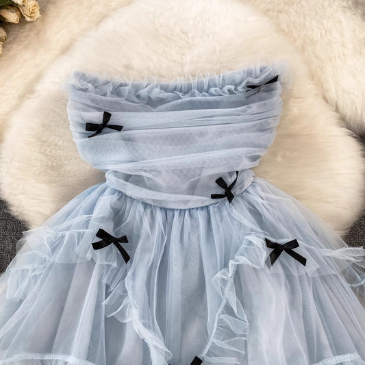 Sweet baby doll collar puff sleeve dress 2025 waist bow a-line princess dress R1192