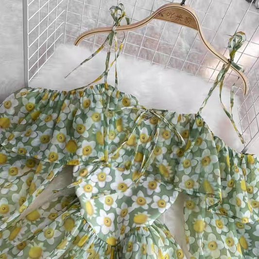 Sweet Chiffon Floral Dress, Cute A-line Dress S4439