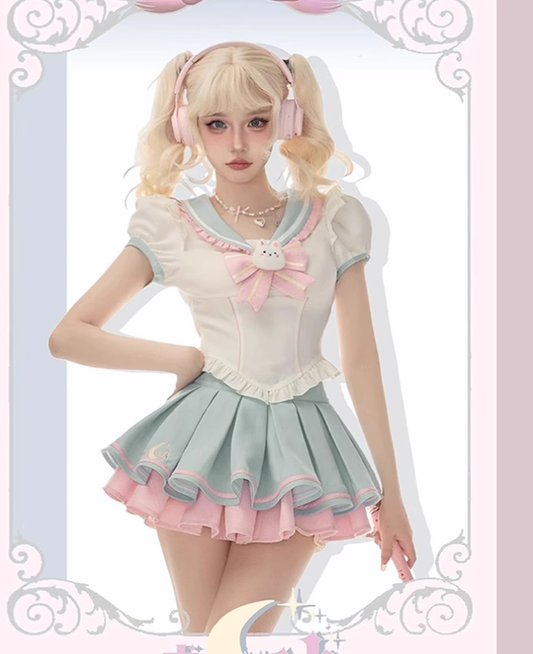 Sweet design doll collar shirt 2025 plus size beautiful girl puffy skirt suit R1314