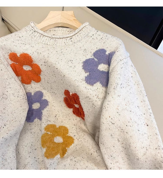 Sweet flower embroidered round neck sweater jacket for women S4917