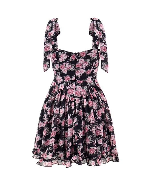 Tea break French floral suspender dress 2025 new sweet and spicy style waist slim chiffon short skirt R0116